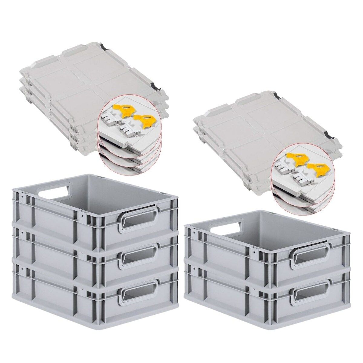 PROREGAL 5x Eurobox NextGen Grip mit Scharnierdeckel & gelben Verschlüssen | HxBxT 12x30x40cm | 11 Liter | Griffe offen | Glatter Boden