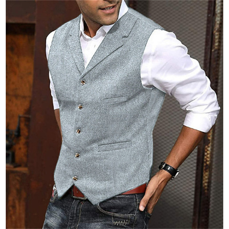 Men's Fashion Vest Herringbone Tailored Fit Notch Single Breasted Five-buttons Silver Black Red 2023