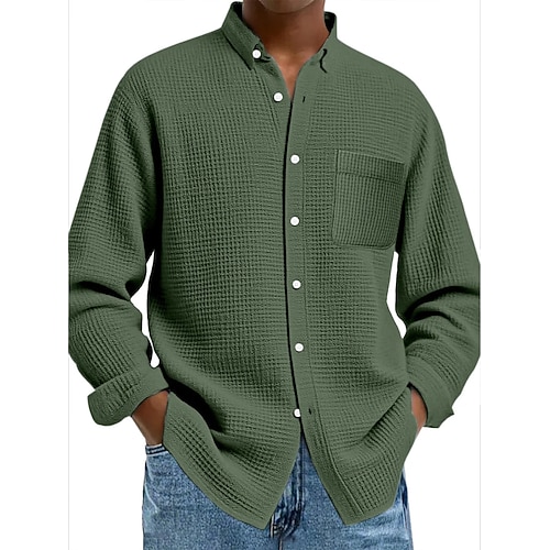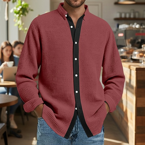Per uomo Camicia Camicia elegante Camicia con Bottoni Semplice Matrimonio Feste Nero Bianco Vino Blu marino Manica Lunga Bavero Primavera Autunno Abbigliamento Patchwork