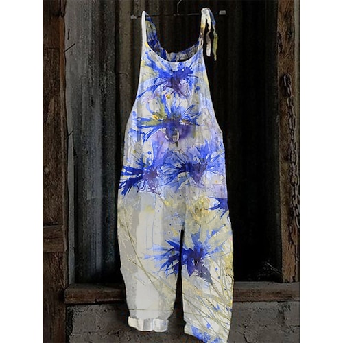 Damen Modisch Strassenmode Täglich Spaghetti-Shirt Hose mit weitem Bein Ärmellos Gurt Blumen Farbblock Bedruckt Casual Täglich Blau Beige Sommer Regular Fit