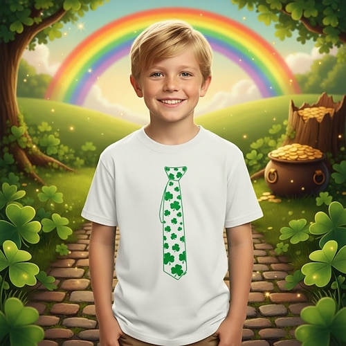 100% Cotone Giorno di San Patrizio Bambini Ragazzi Blu Nero Bianco Grafico Giorno di San Patrizio Maglietta Blusa Girocollo Manica Corta All'aperto Abbigliamento Quotidiano Moda Streetwear Designer