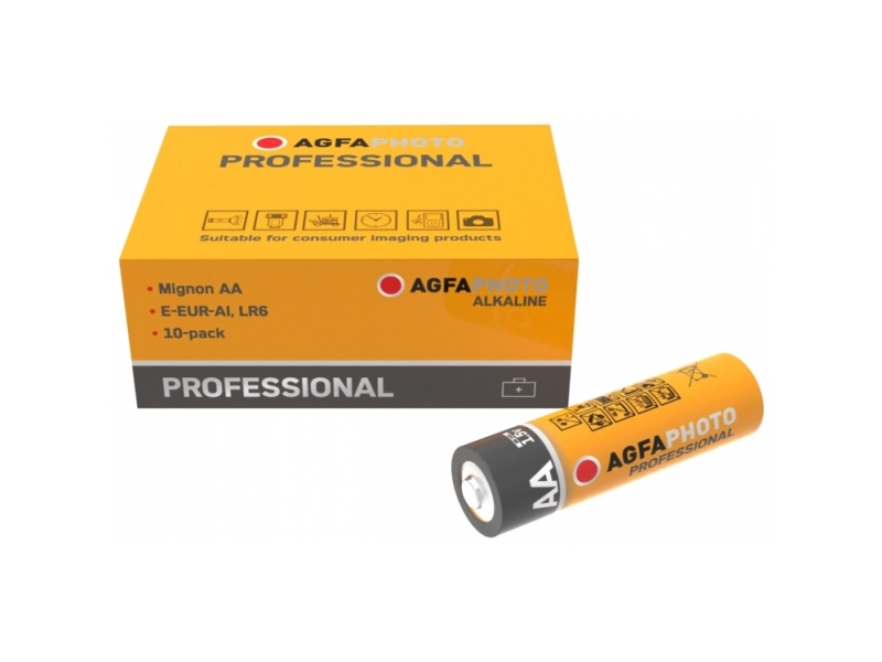 AgfaPhoto 110-853482, Engangsbatteri, AA, 1,5 V, 10 stykker, Grå, Rød, Hvit, Gult, 50,5 mm