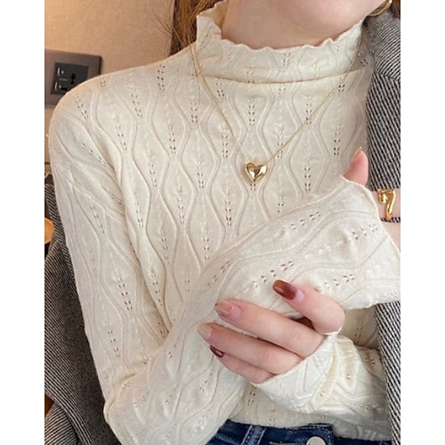 Per donna Felpa Maglione Streetwear Casual Tinta unica Collo alto Lavorato a maglia Manica Lunga Top Regolari Maglia Quotidiano Ferie Uscire Nero Bianco Autunno Inverno