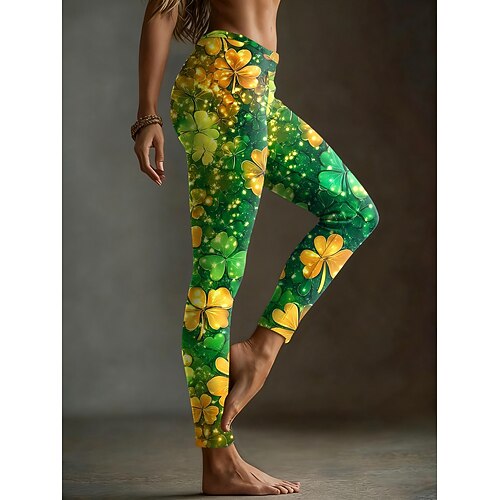 Per donna Leggings Attivo Lunghezza intera Vita AltaPantsGiorno di San Patrizio Grafico Trifoglio Stampato Taglio alto Comodità All'aperto Confortevole Alta elasticità Vacanza Formale Festival Bianco