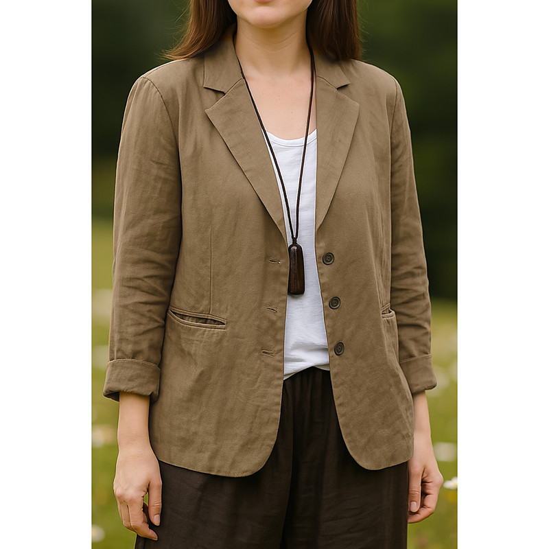 Women's Blazer Comfortable Breathable Pocket Vintage Casual Plain Office Street Casual Daily Wear Single Breasted Regular Turndown Regular Fit 3/4 Length Sleeve Outerwear Black White Khaki Summer Fall