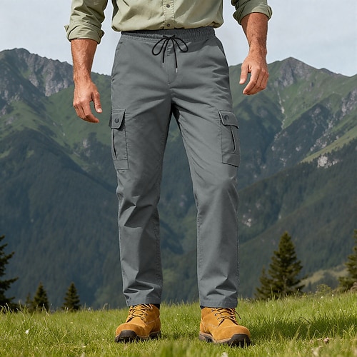 Herren Cargo-Hosen Hose Kordelzug Elastischer Bund Mehrere Taschen Einfach tragbar Outdoor Täglich Campen und Wandern Mode Klassisch Schwarz Armeegrün