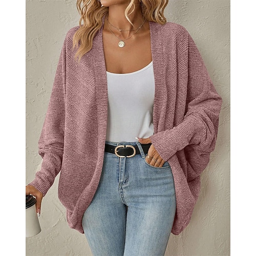 Per donna Cardigan Con cappuccio Tinta unica Moda Essenziale Informale Manica lunga Largo Maglioni cardigan Con cappuccio Aperturaanteriore Autunno Inverno Verde mela Jeans Viola / Per eventi