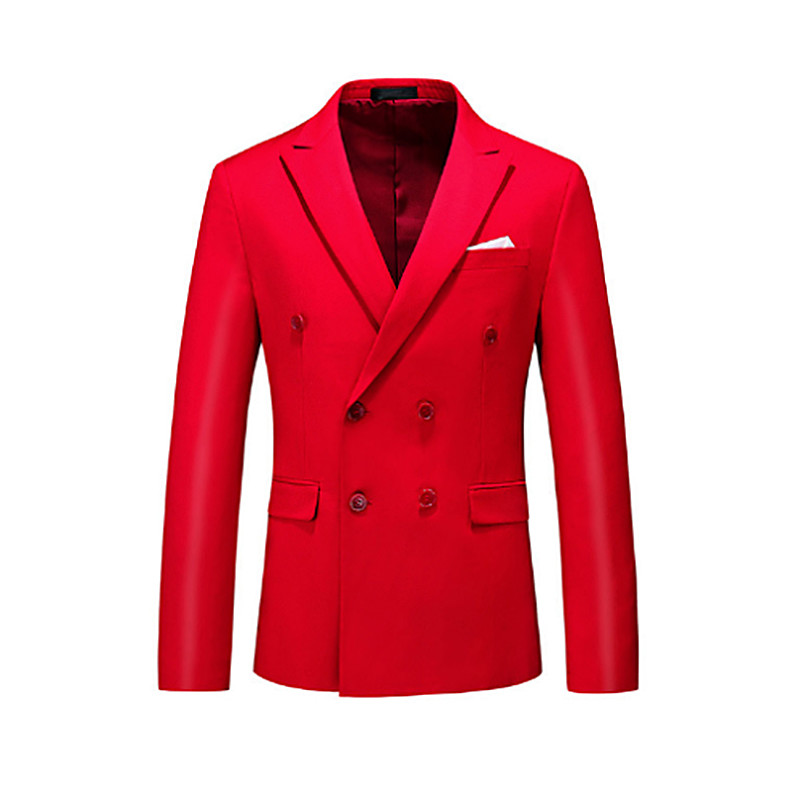 Men's Jacket Blazer Wedding Party Business Attire Spring Fall Solid Color Double Breasted Blazer Black White Pink Red