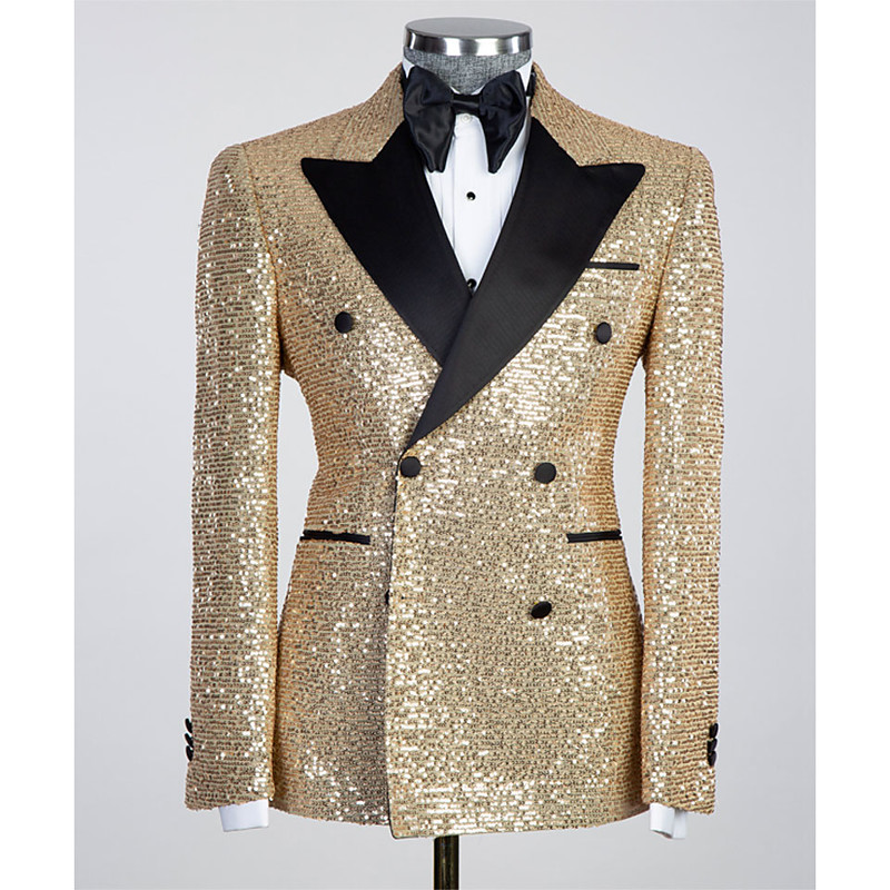 Men's Blazer Jacket Tuxedo Closure collar Party Sparkle Sequin Solid Colored Black Silver Champagne Tailored Fit Double Breasted Six-buttons