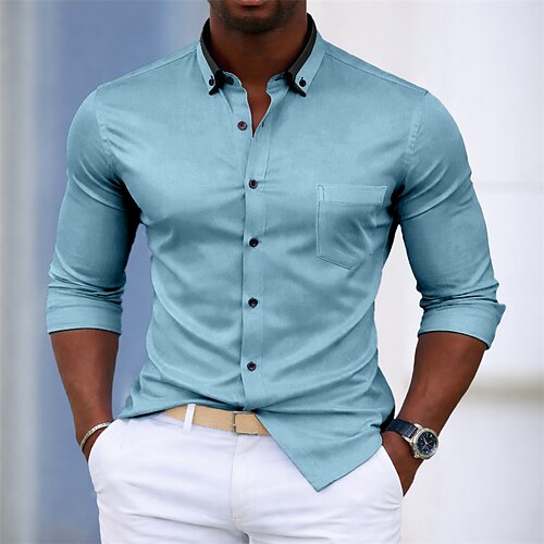 Per uomo Camicia Camicia elegante Camicia button-down Camicia non stiro Tinta unica Quotidiano Affari Blu Blu chiaro Nero Bianco Manica Lunga Collo ripiegato Tutte le stagioni Abbigliamento Patchwork