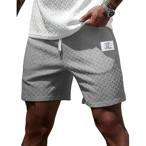 Herren Shorts Freizeitshorts Shorts mit Struktur Jacquard Kordelzug Einfach Komfort Atmungsaktiv Kurz Lässig Täglich Outdoor Urlaub Streetwear Schwarz Weiß Dehnbar