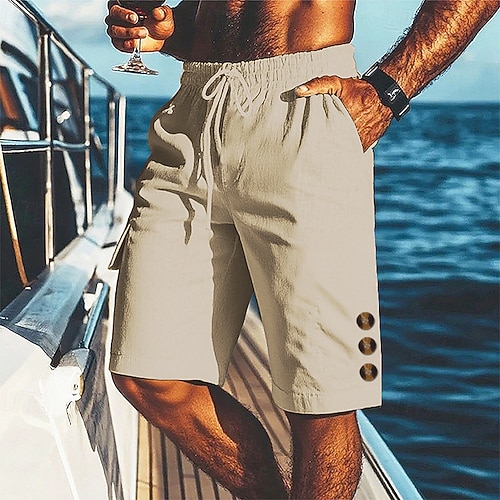 Per uomo Shorts Shorts di Lino Pantaloncini Estivi Shorts da Spiaggia Coulisse Elastico in vita Tasche Multiple Semplice Comodità Traspirante Corto Vacanza Ferie Spiaggia Hawaiano Boho Nero Bianco