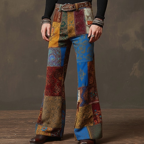 Per donna Pantaloni ispirati al lino Gamba larga Pantaloni Stile Etnico Casual Boho Lunghezza intera Vita Alta Floreale Grafico Paisley Tasca Elastico in vita Stampa Traspirabilità Morbido