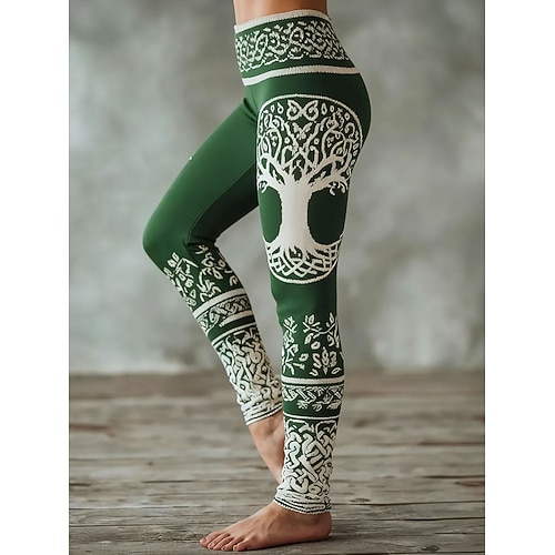 Leggings Boho Viking da donna Vacanza Stile Etnico Vintage Full Length Alta Vita Grafica Motivo Geometrico Morbidi Confortevoli Elasticizzati Formali Outdoor Vacanza Verdi Primavera Autunno Inverno