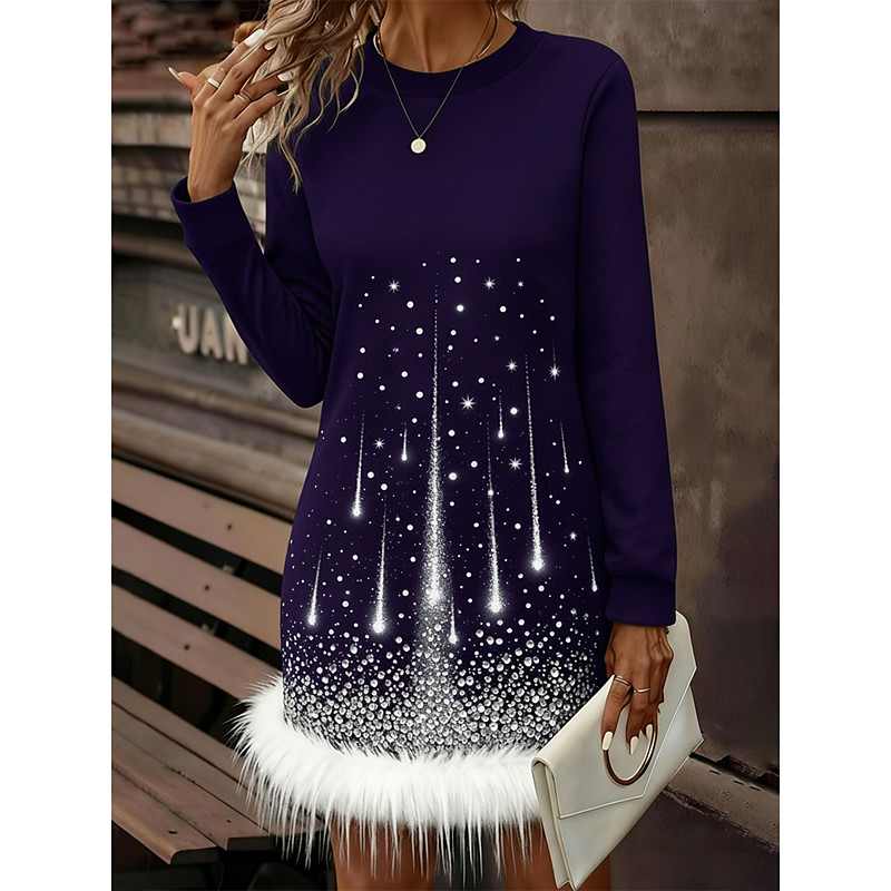 Women's Mini Dress Casual Dress Winter Dress Sheath Dress Elegant Fashion Daily Outdoor Vacation Regular Fit Graphic Galaxy Long Sleeve Crew Neck Black Navy Blue Dark Green Purple Spring Fall Winter