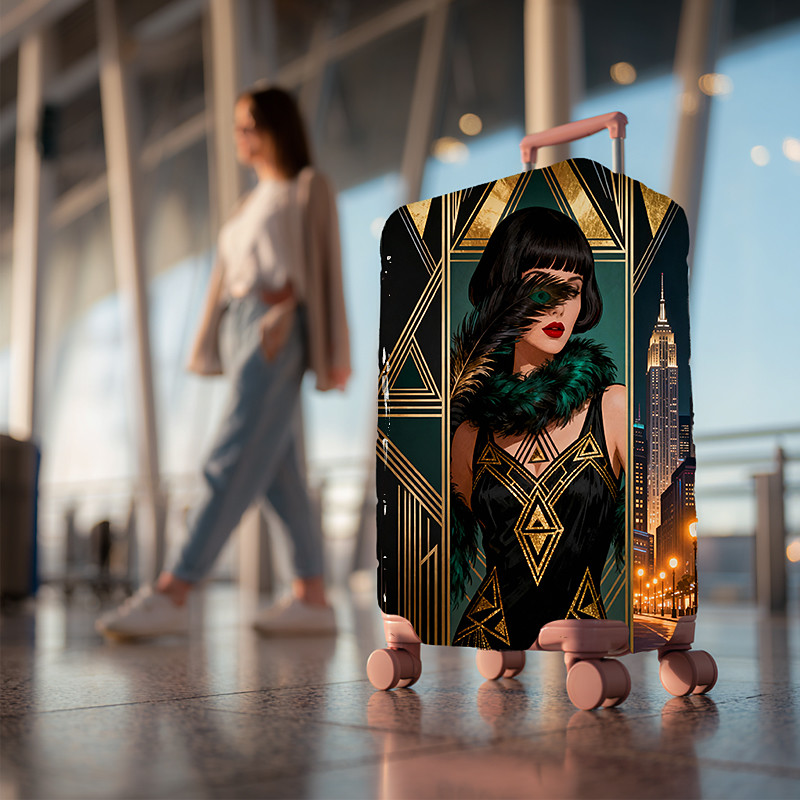 Elegant Woman Print Luggage Cover Stretch Suitcase Protector for Travel