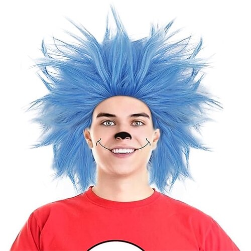 Parrucca di Carnevale Rosa Rosso Blu Liscio Corto Parrucca sintetica da festival Martedì grasso Parata Capelli per costumi da cosplay per Da uomo