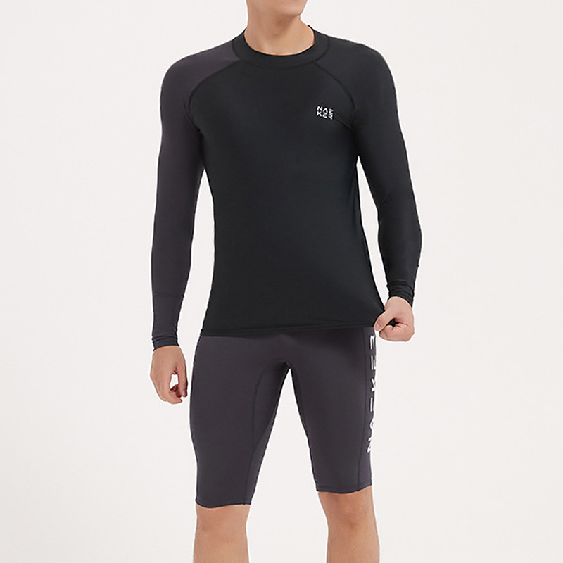 Men's 2 Piece Rash Guard Surfing Shirt Swimsuit Shorts Solid Colored UPF50 Breathable Long Sleeve Diving Suit Surfing Canoeing Snorkeling Spring