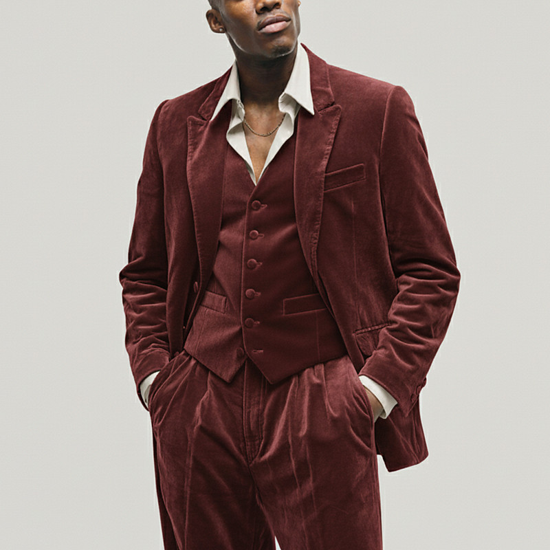 Men's Wedding Party Evening Wear Suits Notch Lapel Burgundy Dark Green Fashion Business Solid Colored Standard Fit 3 Piece Single Breasted Two-buttons