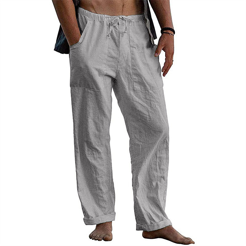 Men's Linen Pants Trousers Summer Pants Drawstring Elastic Waist Straight Leg Plain Comfort Daily Going out Fashion Streetwear Dark Grey Black
