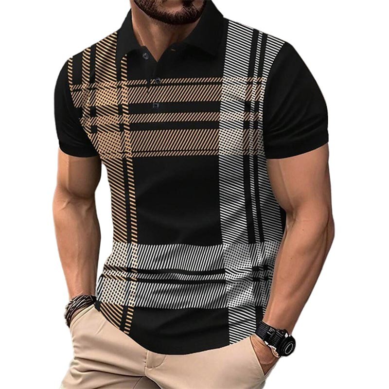 Men's Golf Shirt Golf Polo Work Casual Lapel Short Sleeve Basic Modern Plaid Button Spring Summer Regular Fit Black White Red Navy Blue Golf Shirt