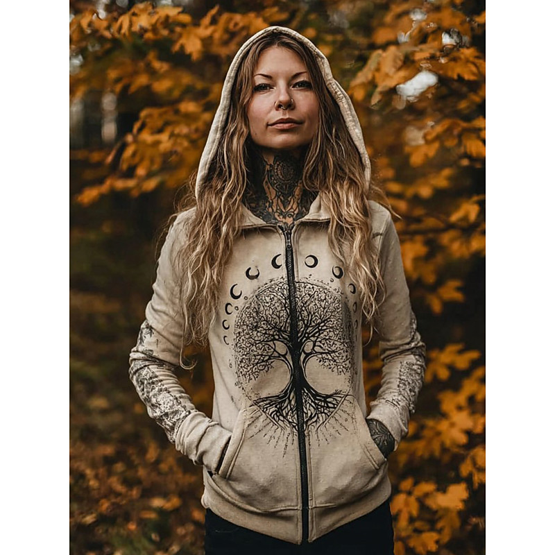 Women's Zip Up Viking Hoodies Graphic Plaid Fashion Western Casual Long Sleeve Hooded Regular Tops Street Dailywear Casual Zipper Pocket Print Light Grey Dark Grey Spring Fall Winter