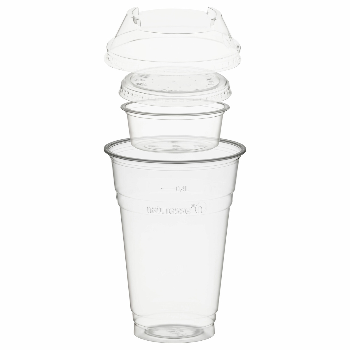 VEPATIM 100x BIO Trinkbecher 400ml + Domdeckel+ 60ml Einsatzbecher stapelbar PLA
