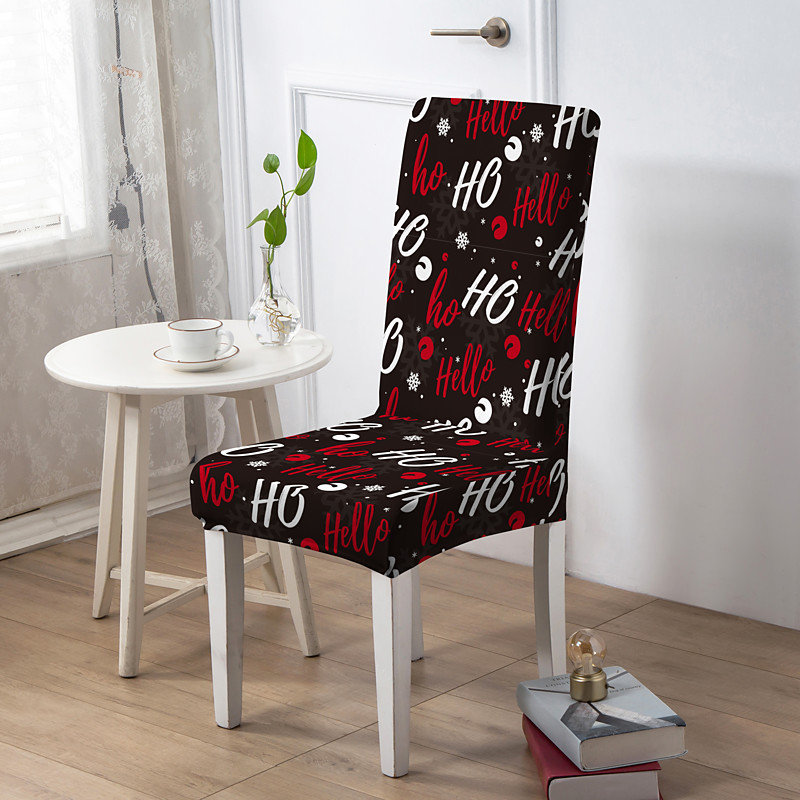 Christmas Dining Chair Cover, Geometric Printed Polyester Slipcover, Elastic Non-Slip Chair Protector for Home or Party