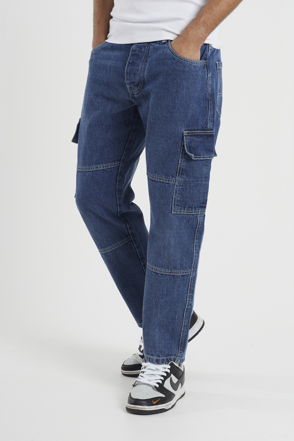 Brave Soul Mens Cargo Jeans Loose Fit Combat - Blue - Size 34 Regular | Brave Soul Sale | Discount Designer Brands