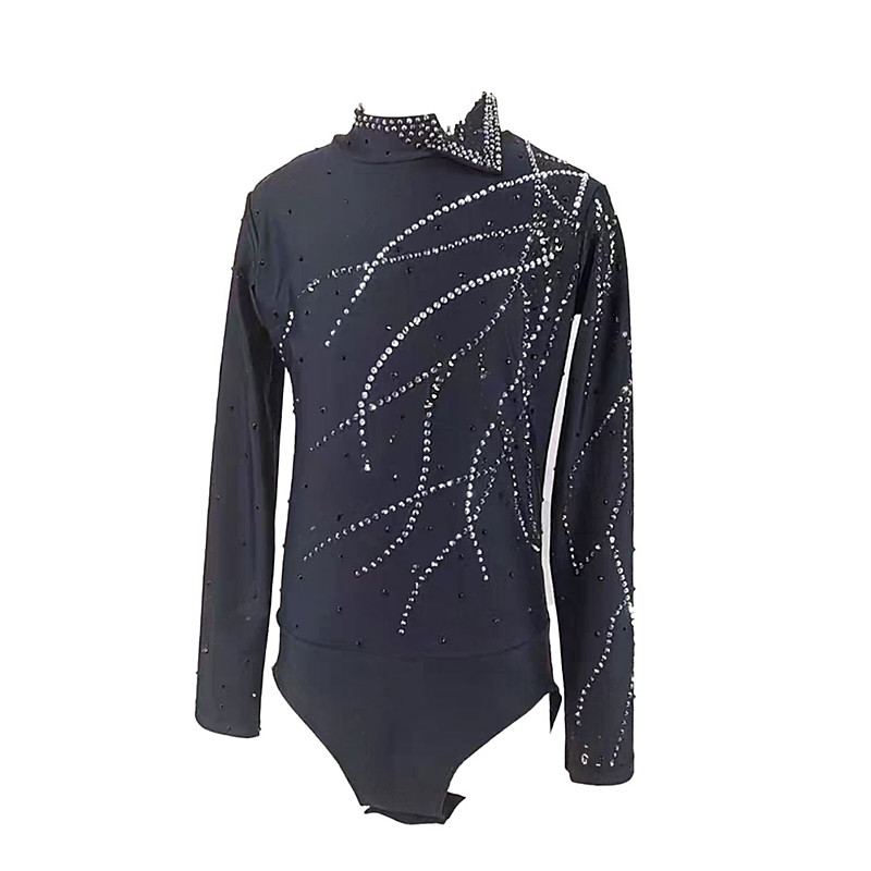 Figure Skating Top Men's Boys' Ice Skating Tops Black Patchwork Spandex High Elasticity Training Professional Competition Skating Wear Classic Crystal / Rhinestone Long Sleeve Ice Skating Figure