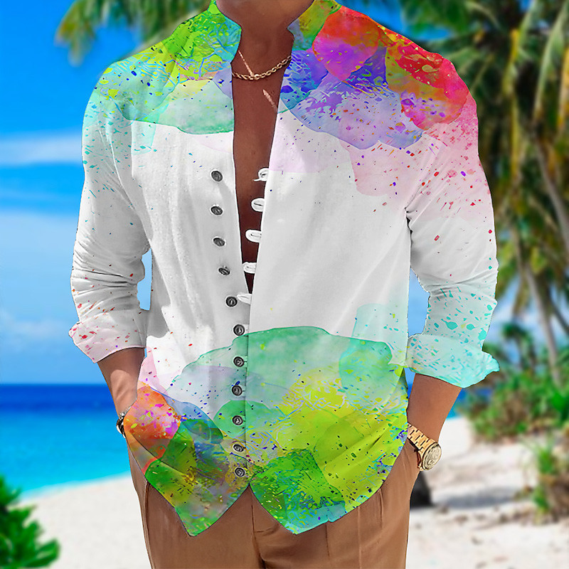 Men's Gradient Shirt Button Up Shirt Long Sleeve Fashion Designer Casual Outdoor Vacation Daily Fall Autumn / Fall Spring Summer Stand Collar Print White Red Purple Green Rainbow