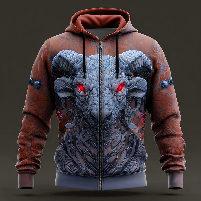 Men's Animal 3D Hoodie Jacket Sweatshirt Fantasy All Over Print Long Sleeve Zip Vacation Going out Streetwear Red Blue Brown Green Zipper Fall Winter Designer S M L XL XXL XXXL