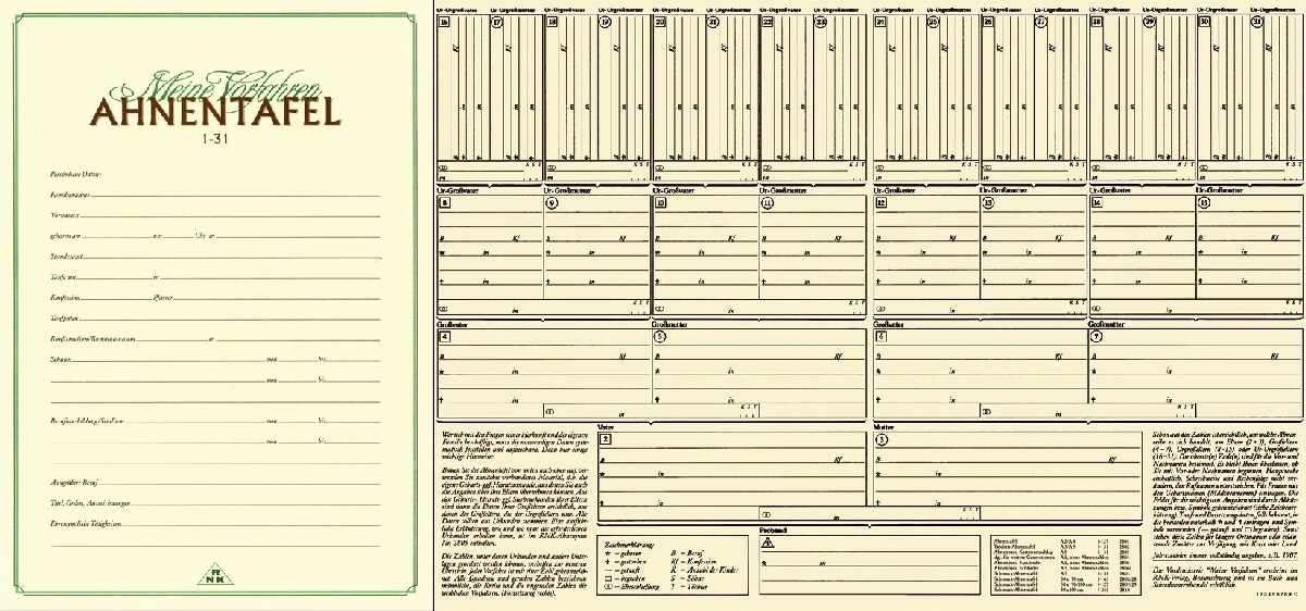 RNK Ahnentafel 1-31 für 5 Generationen auf Urkundenpapier A3 gefalzt auf A4