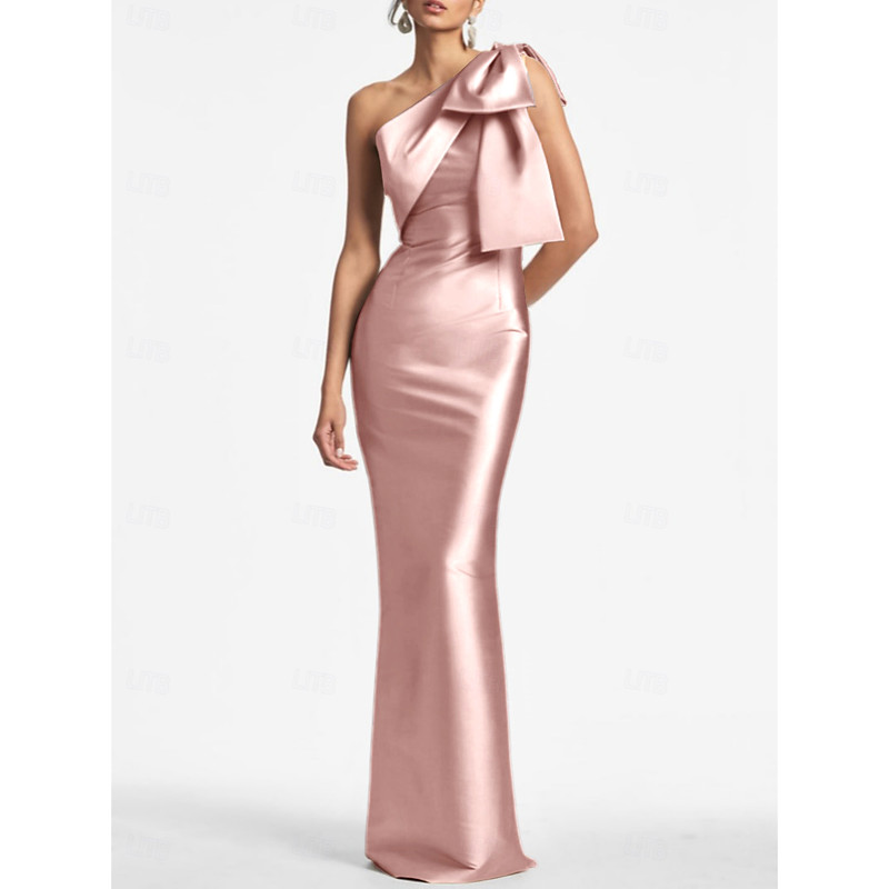 Mermaid Trumpet Ankle Length Prom Dresses Evening Gown Ball Gown Formal Dress Elegant Sleeveless One Shoulder Formal Wedding Guest Satin with Bow(s) Slit