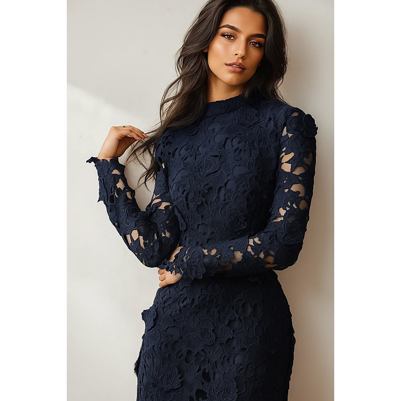 Sheath Column Ankle Length Prom Dresses Evening Gown Ball Gown Formal Dress Elegant Glittering Celebrity Style Long Sleeve High Neck Garden Party Wedding Lace with Appliques
