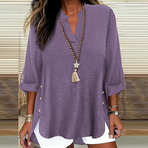 Per donna Blusa Tinta unica Elegante Essenziale Casual Manica Lunga Scollo a V Top Regolari Quotidiano Lavoro Blu Nero Bianco Rosso Viola Estate Primavera Autunno Inverno