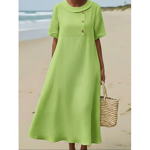 Per donna Abito Midi 100% cotone Abito in cotone e lino Moda Moderno All'aperto Vacanza Ferie Vestibilità comoda Semplice Manica Corta Scollo a V Blu Nero Bianco Verde chiaro Estate Primavera