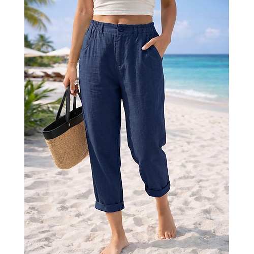 Per donna Pantaloni casual Vacanza Essenziale Lunghezza alla caviglia Vita Alta Confortevole Inelastico Vacanza Formale Streetwear Blu Grigio scuro Aalbicocca Nero Estate Primavera Vestibilità comoda