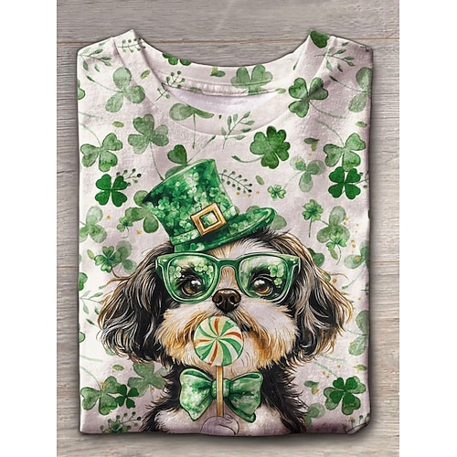 T-shirt da donna per il giorno di San Patrizio grafica cane shamrock vintage elegante classico maniche corte colletto tondo top regolare stampa giornaliera verde scuro verde off-white estate primavera