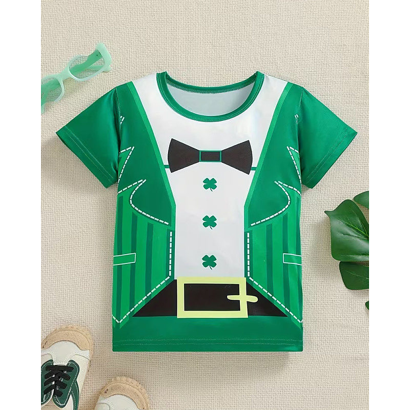 St. Patrick Girls' 3D Graphic Cat Four Leaf Clover T shirt Tee Short Sleeve Summer Spring Fashion Basic Kids 4-12 Years Crew Neck Outdoor Casual Daily Regular Fit