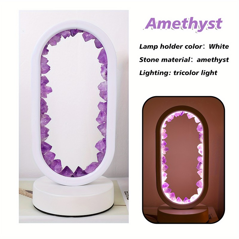 1pc Classic LED Bedside Lamp Natural Quartz Amethyst Flowers Raw Stone Crystal Soothing Night Light for Bedroom and Desk USB Powered Multi-Color Modes Ideal for Christmas Decor