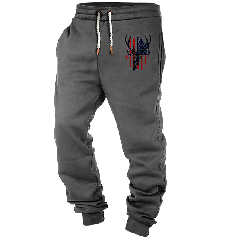 Men's Sweatpants Joggers Trousers Pocket Elastic Waist Drawstring American Flag Deer Comfort Sports Outdoor Daily Fashion Casual White Army Green Micro-elastic