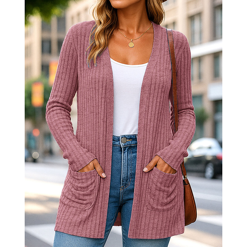 Women's Knitted Cardigan Long Sleeve Top Athleisure Fall V Neck Solid Colored Outdoor Travel Sports Sportswear Activewear Dark Pink Black Pink