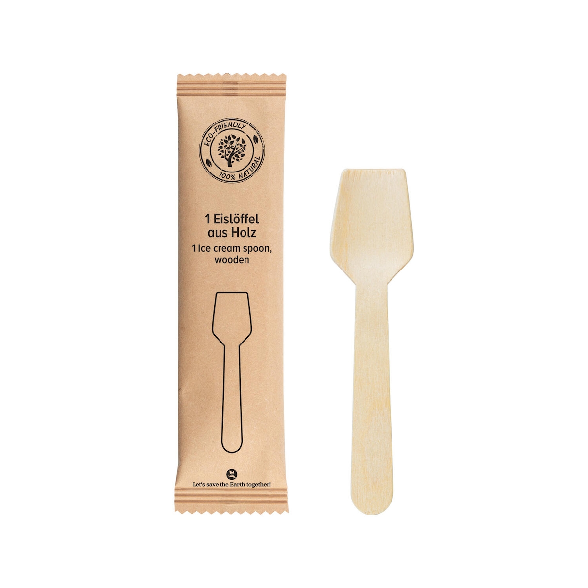 600x Eislöffel aus Holz in Papier gehüllt 9.5cm