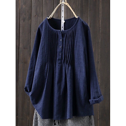 Camicia di lino Top Lungo in Cotone Top Bianco in Cotone Blusa Bianca in Cotone Per donna Bianco Giallo Rosa Tinta unica Bottoni Streetwear Quotidiano Moda Colletto a Camicia Cotone Lino Vestibilit