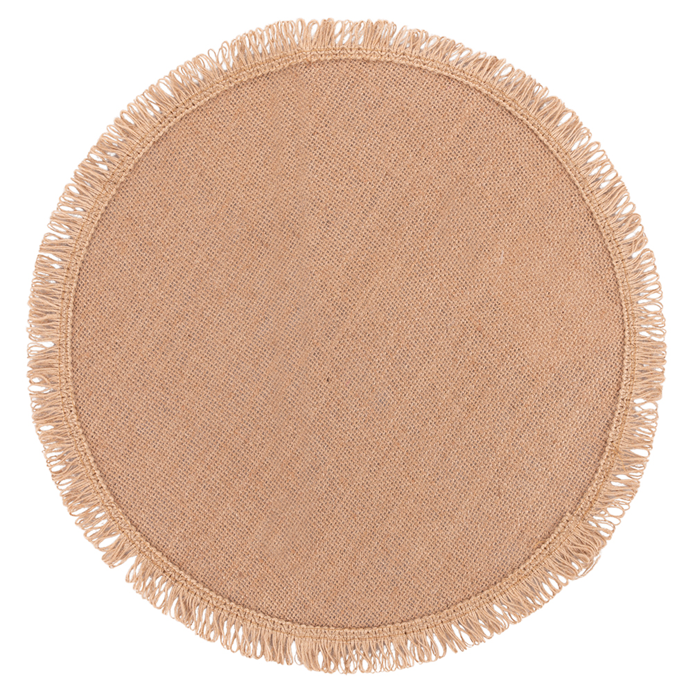 <p>Tovaglietta tonda in juta, bordo ricamato</p>