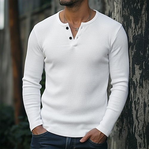 Herren T Shirt Henley Hemd T-Shirt Langarmshirt Langarm Henley Frühling Herbst Einfach Mode Designer Basic Taschen Urlaub Straße Ausgehen Schwarz Weiß Marineblau Top T-Shirt für Herren