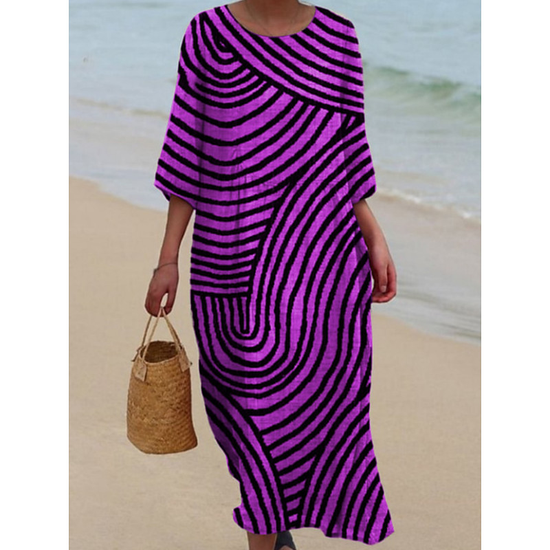 Women's Midi Dress Casual Dress Print Dress Fashion Modern Daily Beach Weekend Regular Fit Line 3/4 Length Sleeve Crew Neck Blue Red Purple Green Spring Fall