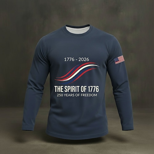 Amerikas 250. Jahrestag Herren Grafik Flagge T Shirt T-Shirt Langarmshirt Langarm T-Shirt 3D-Druck Rundhalsausschnitt Hemd Mode Täglich Basic Täglich Urlaub Straße Marineblau Khaki Armeegrün Frühling