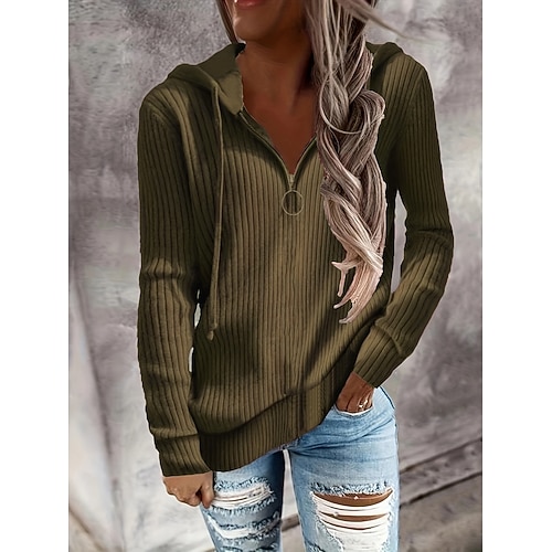 Per donna Felpa Casual Morbido Colore Puro A Coste Con Cappuccio Lavorato a maglia Manica Lunga Top Regolari Maglia All'aperto Quotidiano Weekend Nero Bianco Autunno Inverno